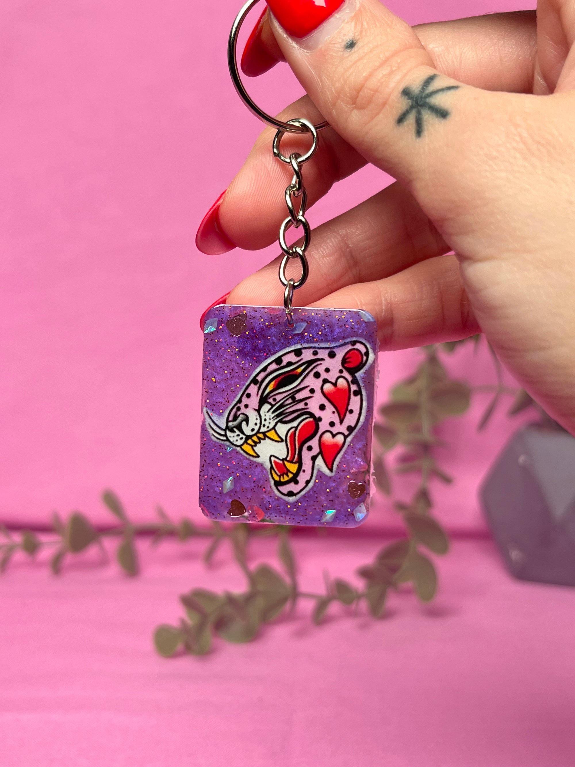 Leopard purple keychain